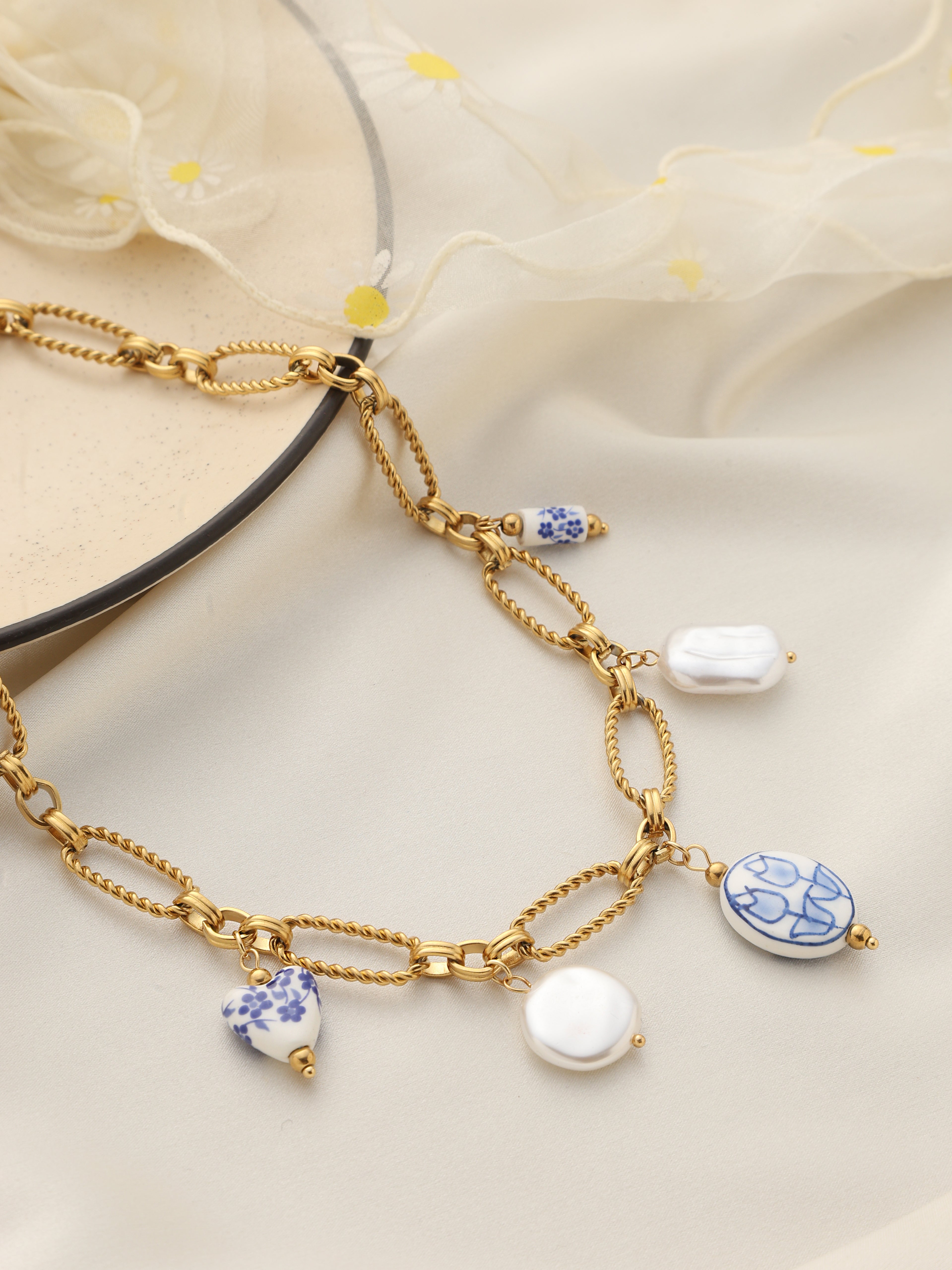 To maintain your jewellery’s beauty, avoid contact with perfumes, water, or harsh chemicals. Store pieces in a dry pouch after use and gently wipe them with a soft cloth to keep them shining and durable.