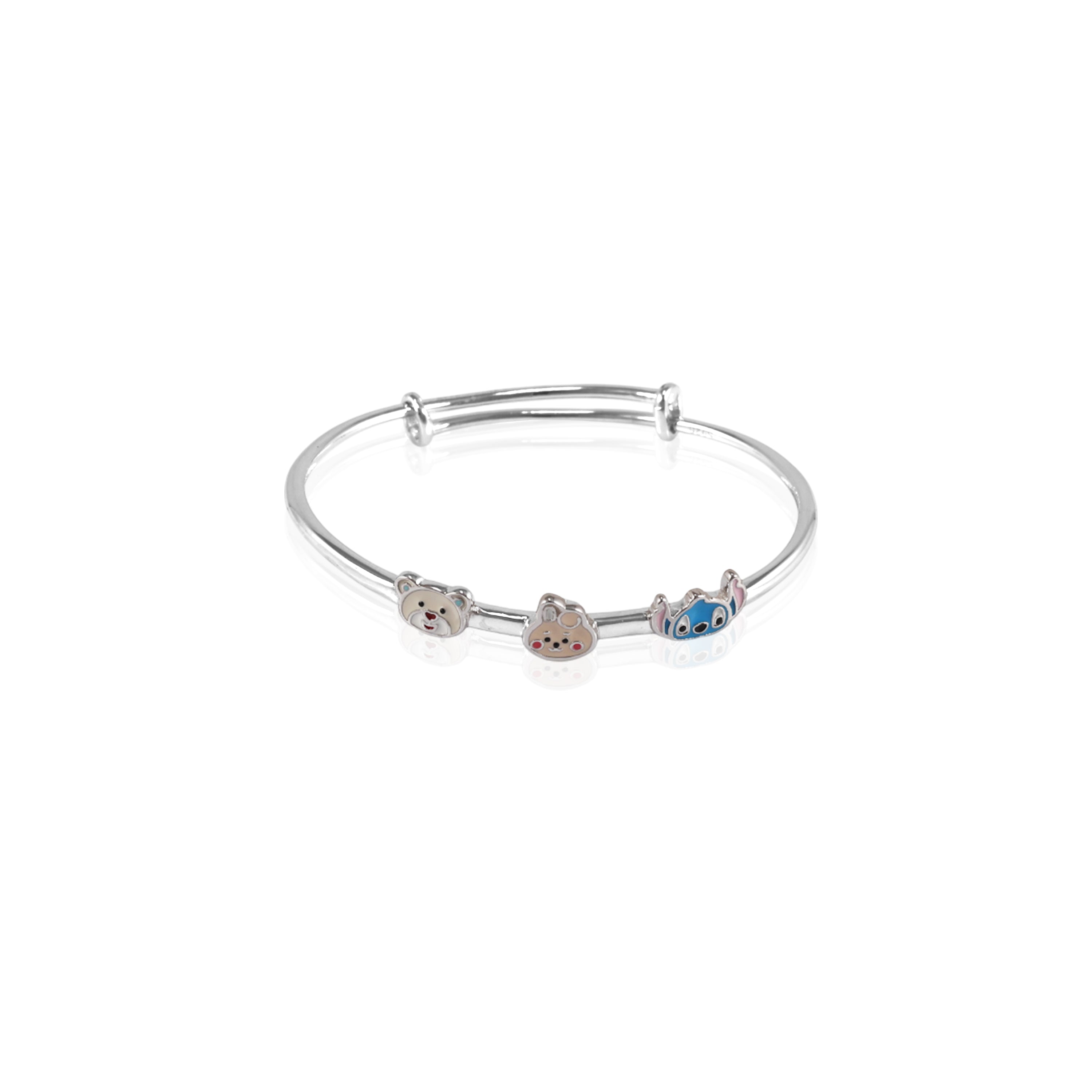 Cute, colorful, and full of joy, the Playful Friends Baby Adjustable Kadli features three adorable character charms that bring a smile at first glance. Designed on a smooth silver band, this kadli adds a fun and friendly touch while remaining gentle on delicate baby skin.