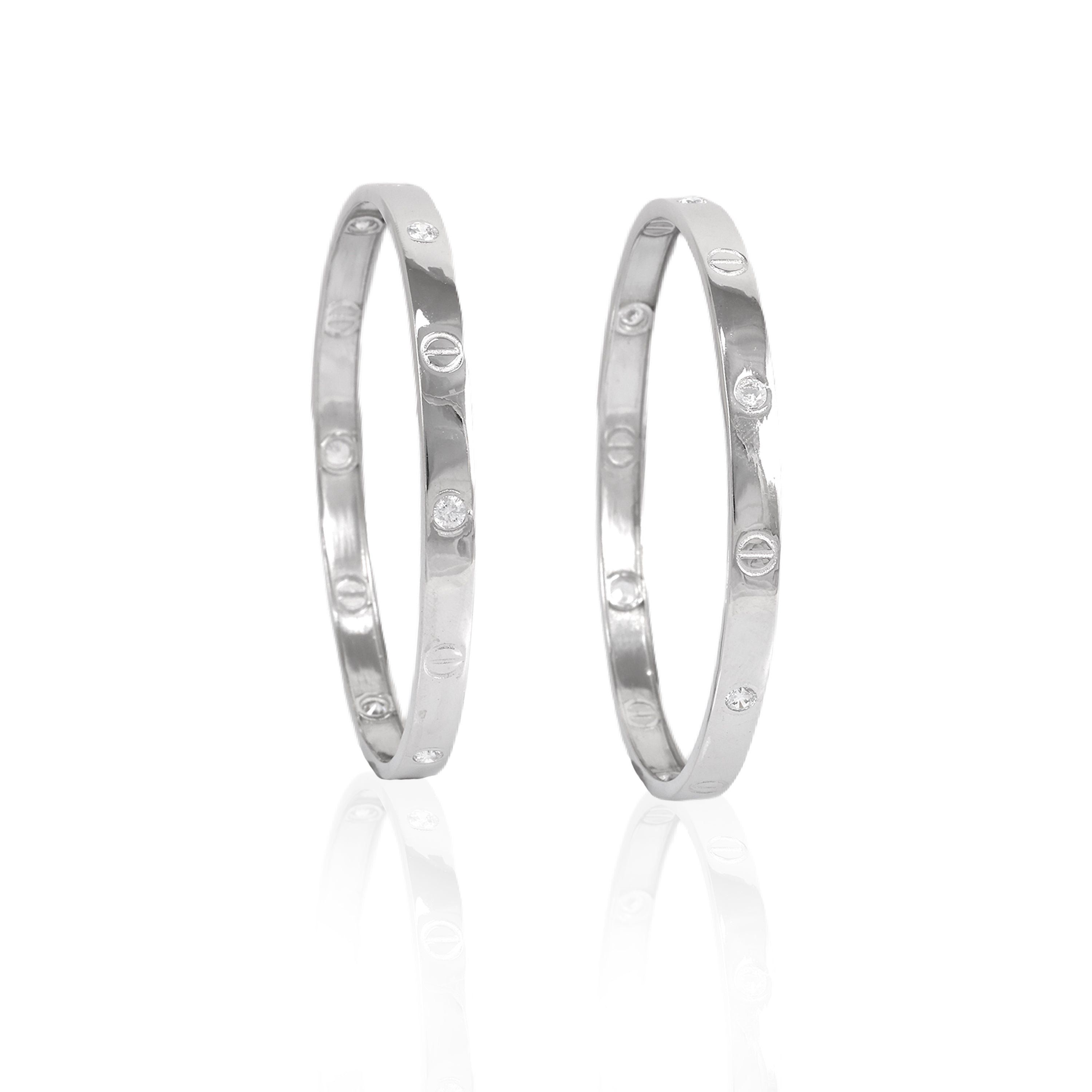A sleek, slender bangle design featuring alternating recessed screw-head motifs and bezel-set round, brilliant stones.This instantly evokes a sense of modern romance and commitment.