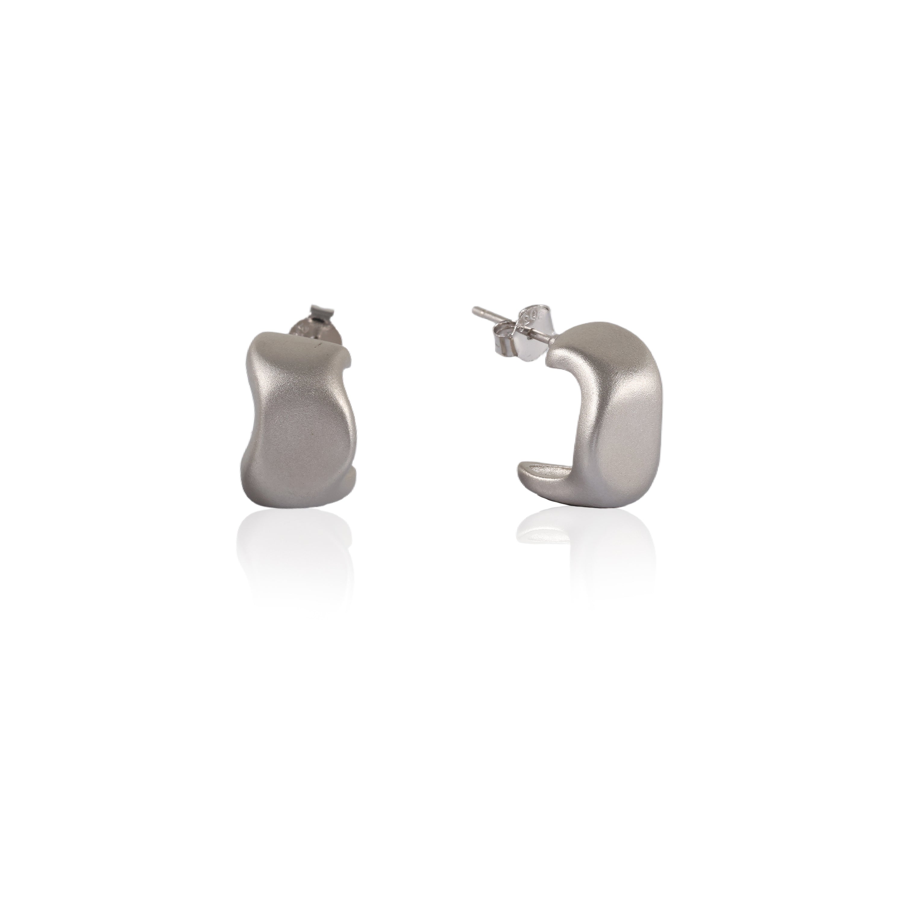 A contemporary, curved 'C' shape, offering a bold yet understated mini-hoop aesthetic. Features a sophisticated matte or brushed finish, lending a soft, diffused glow rather than a high shine.
