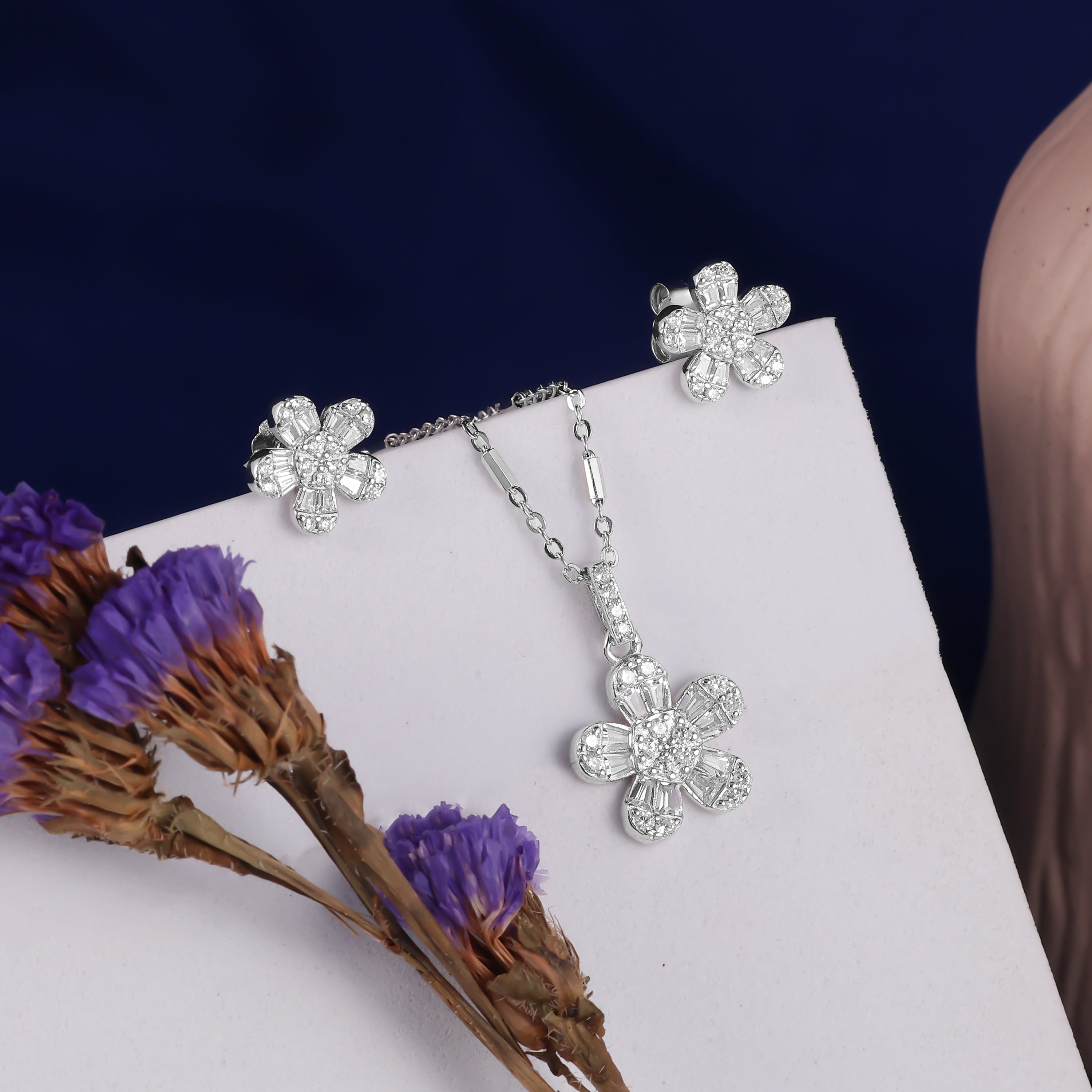 925 SILVER PETAL SHAPE PENDAL SET