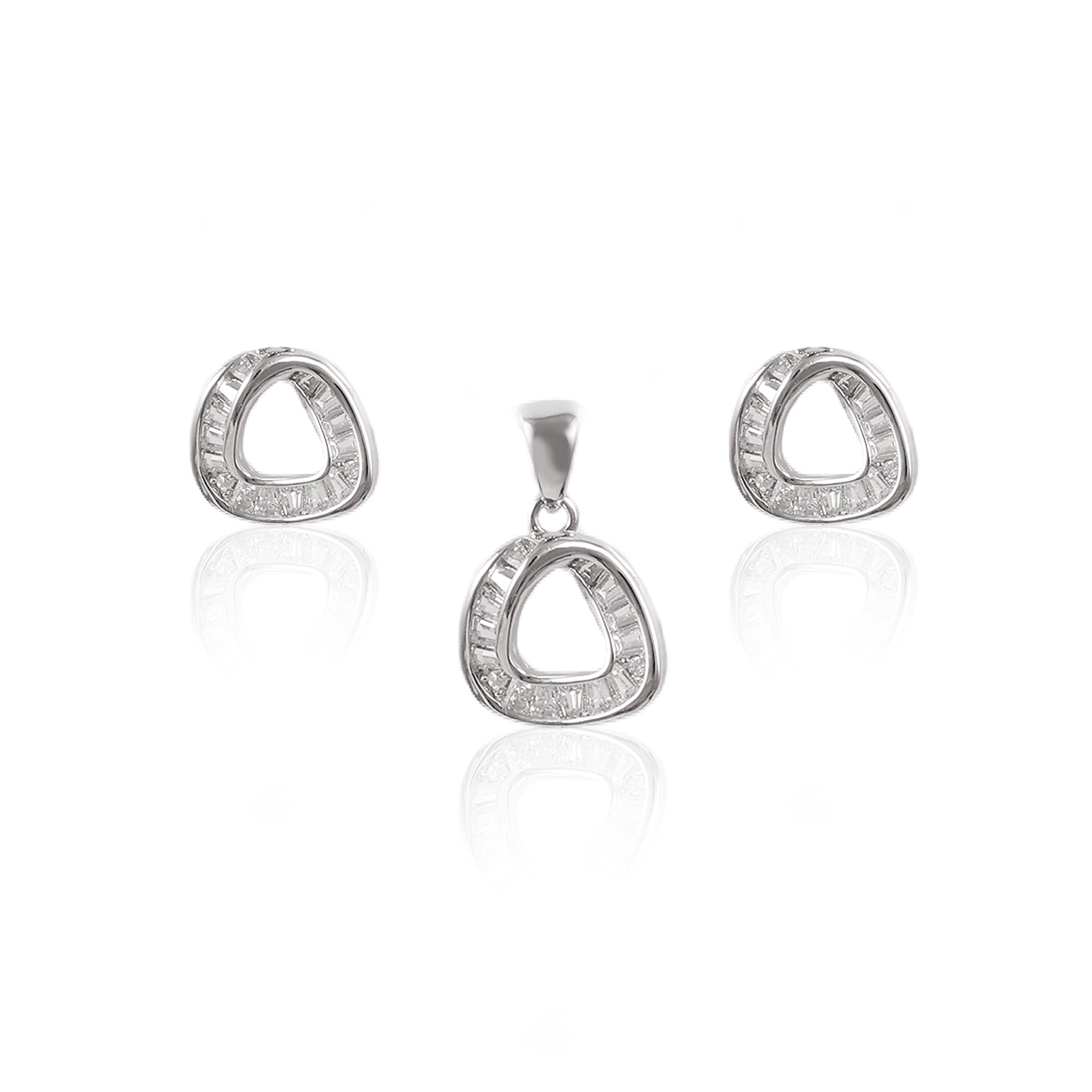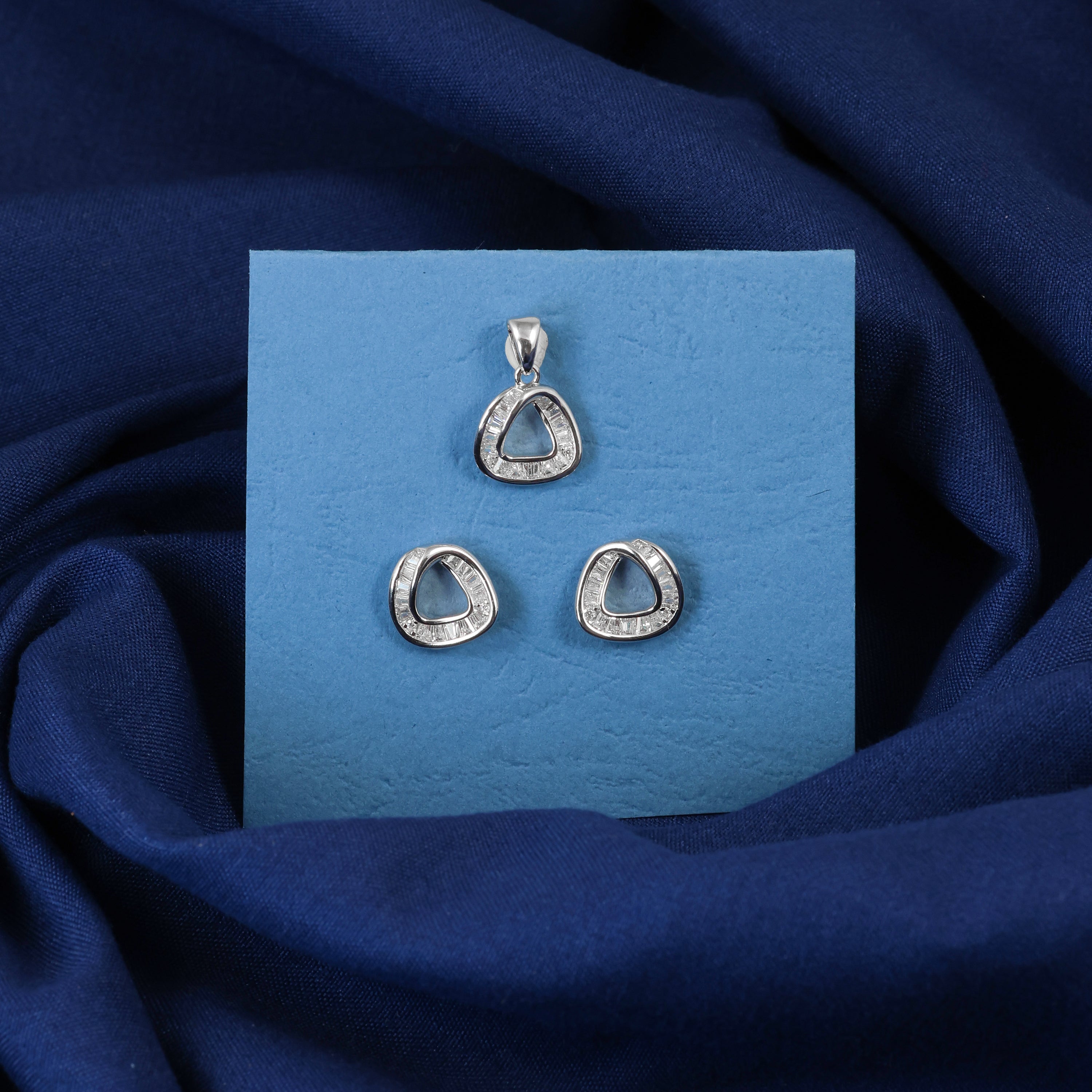 925 SILVER WHITE TOPSSilver Halo Triangle Pendant & Earrings Set