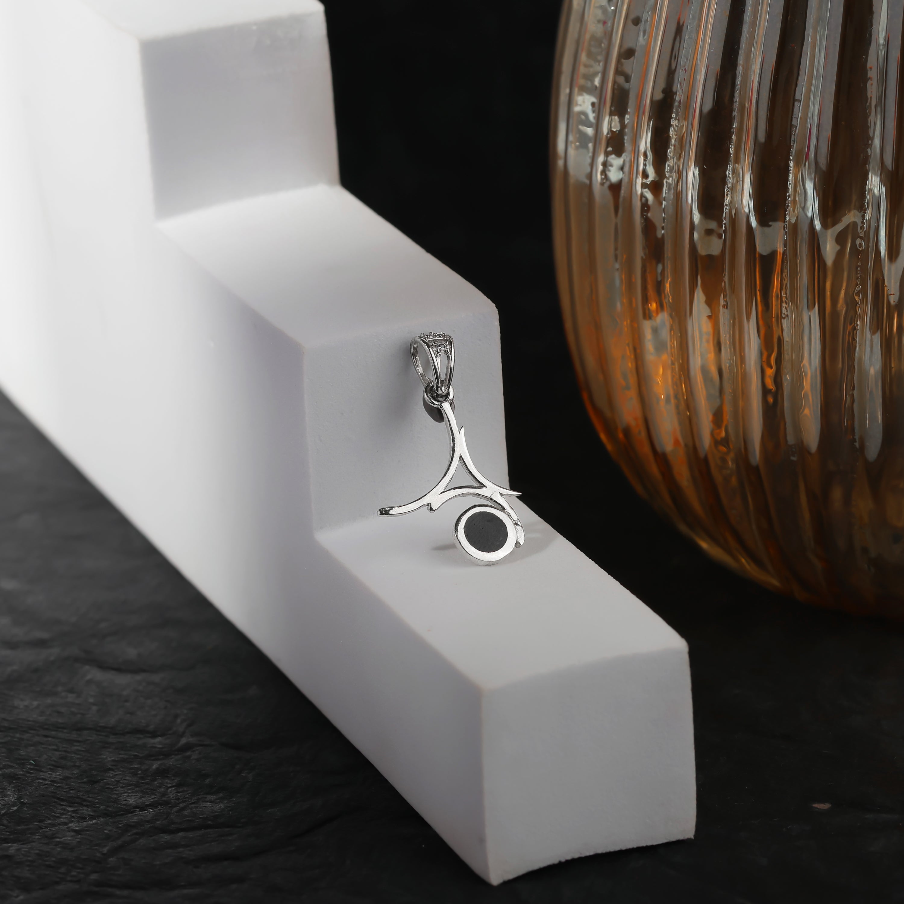 The Eclipse Balance Pendant is a study in contrast and control. Designed with fluid silver lines and a bold black centerpiece, this pendant represents clarity within chaos and strength rooted in stillness.