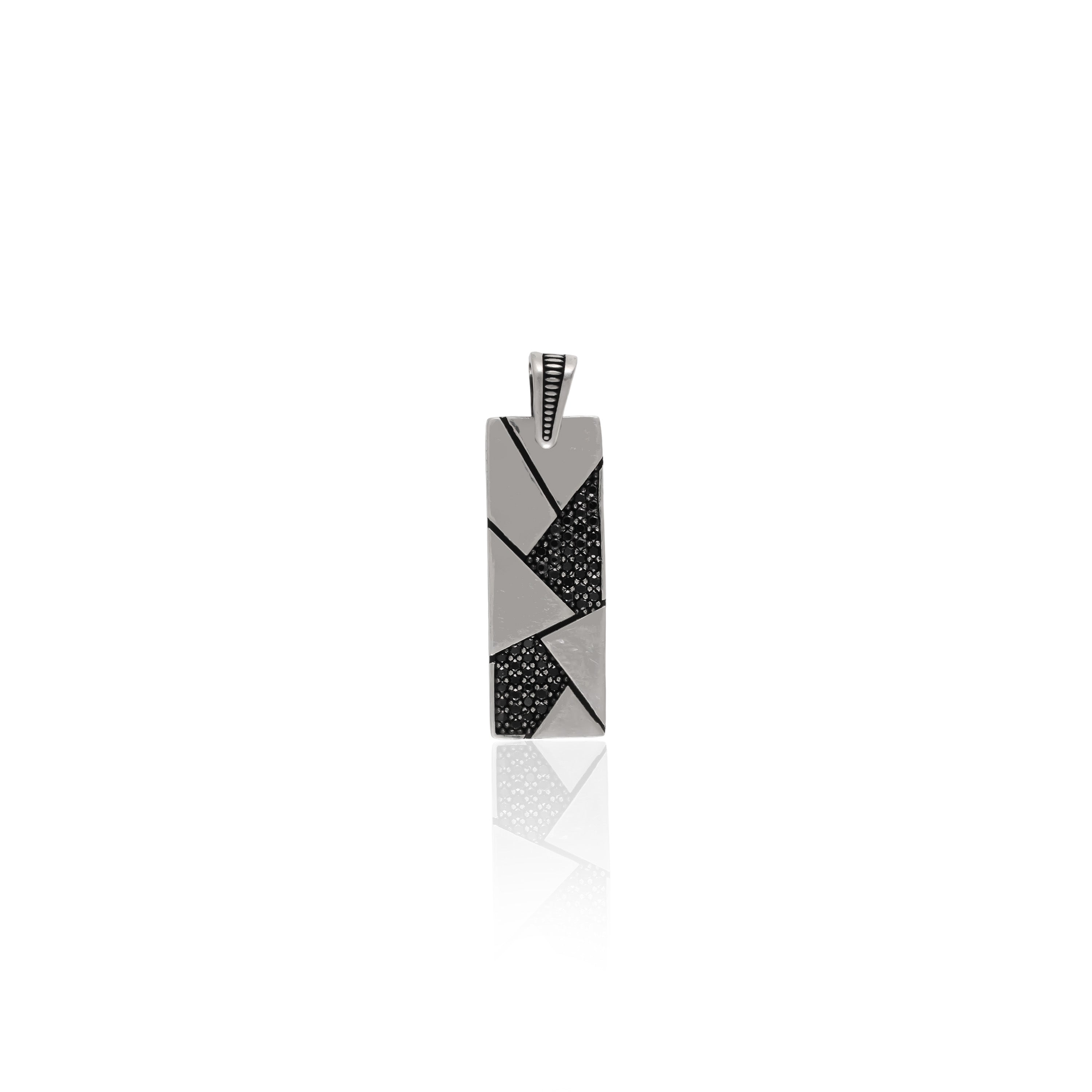 The Fractured Edge Pendant captures strength born from contrast. Designed with angular silver planes and textured black inlays, this pendant reflects a balance between precision and disruption, structure and freedom.