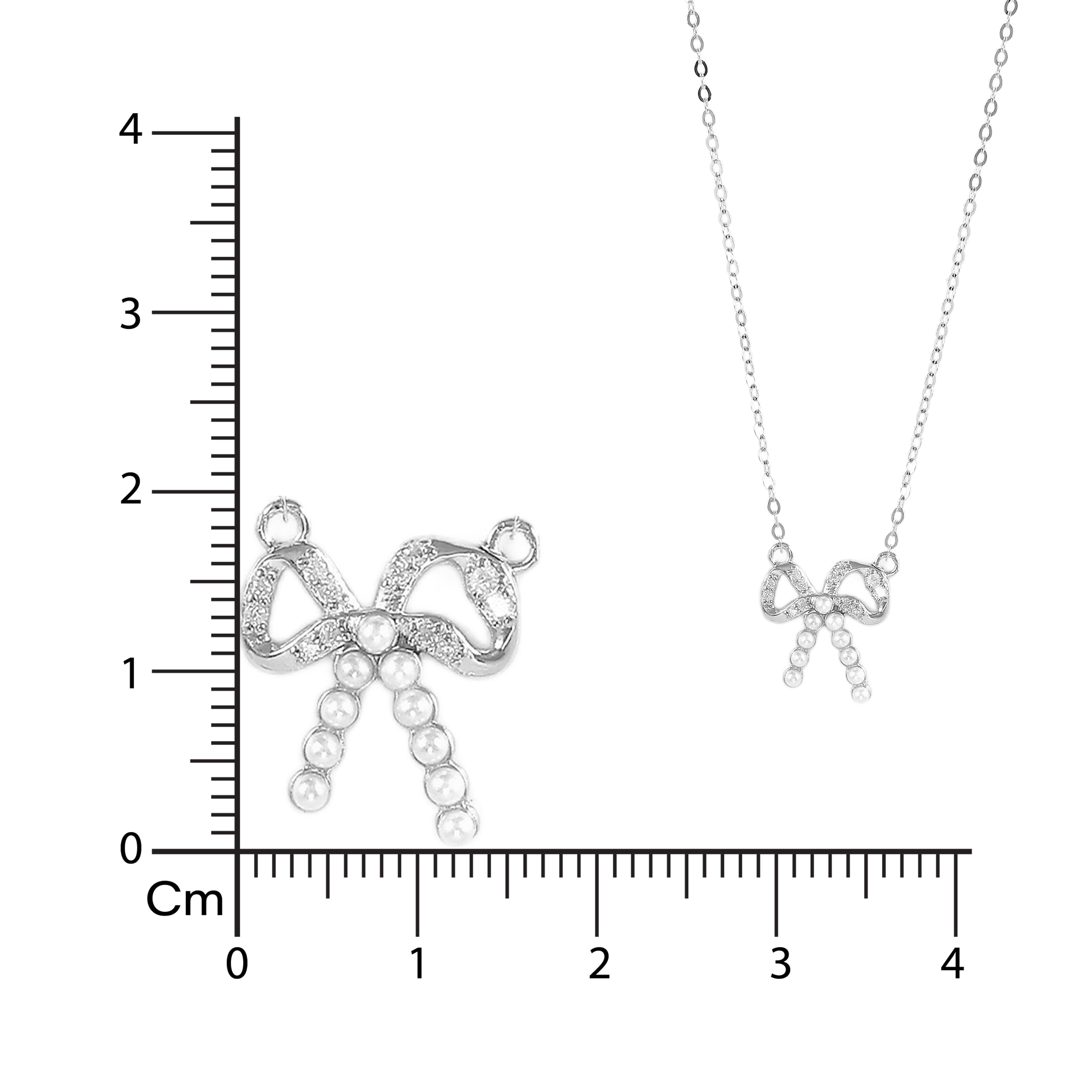 A delicate silver bow pendant outlined with small shimmering stones, featuring two crystal-studded ribbon tails for an elegant, feminine finish.