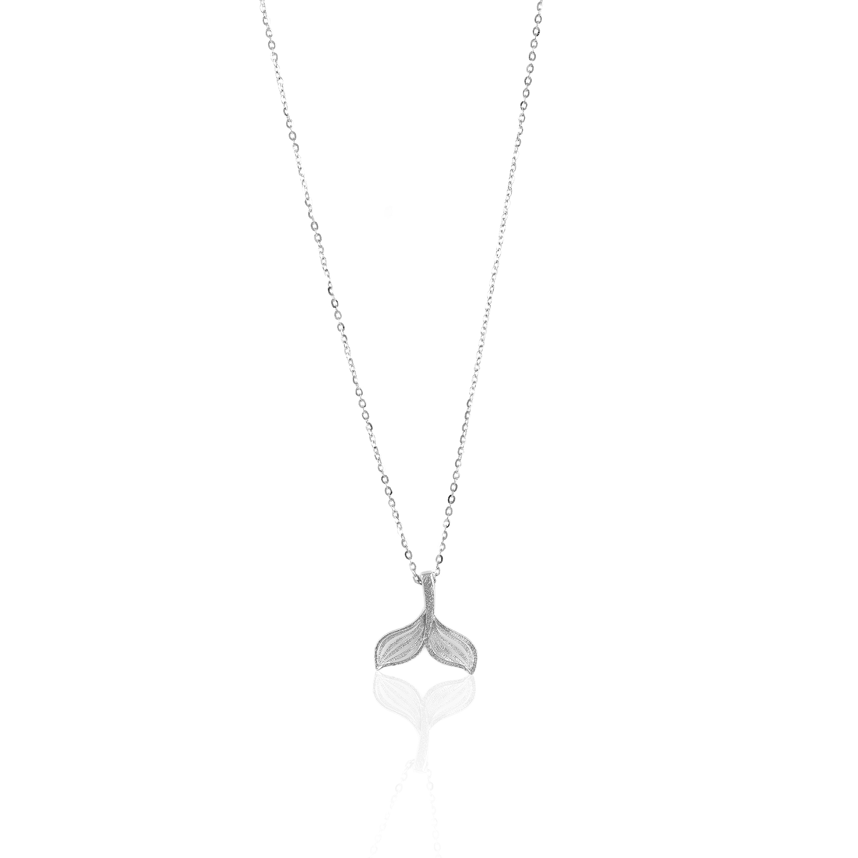 The Silver Mermaid Tail Necklace features a sleek, open-cut tail design with fine curves and a polished silver finish for a clean, elegant look.