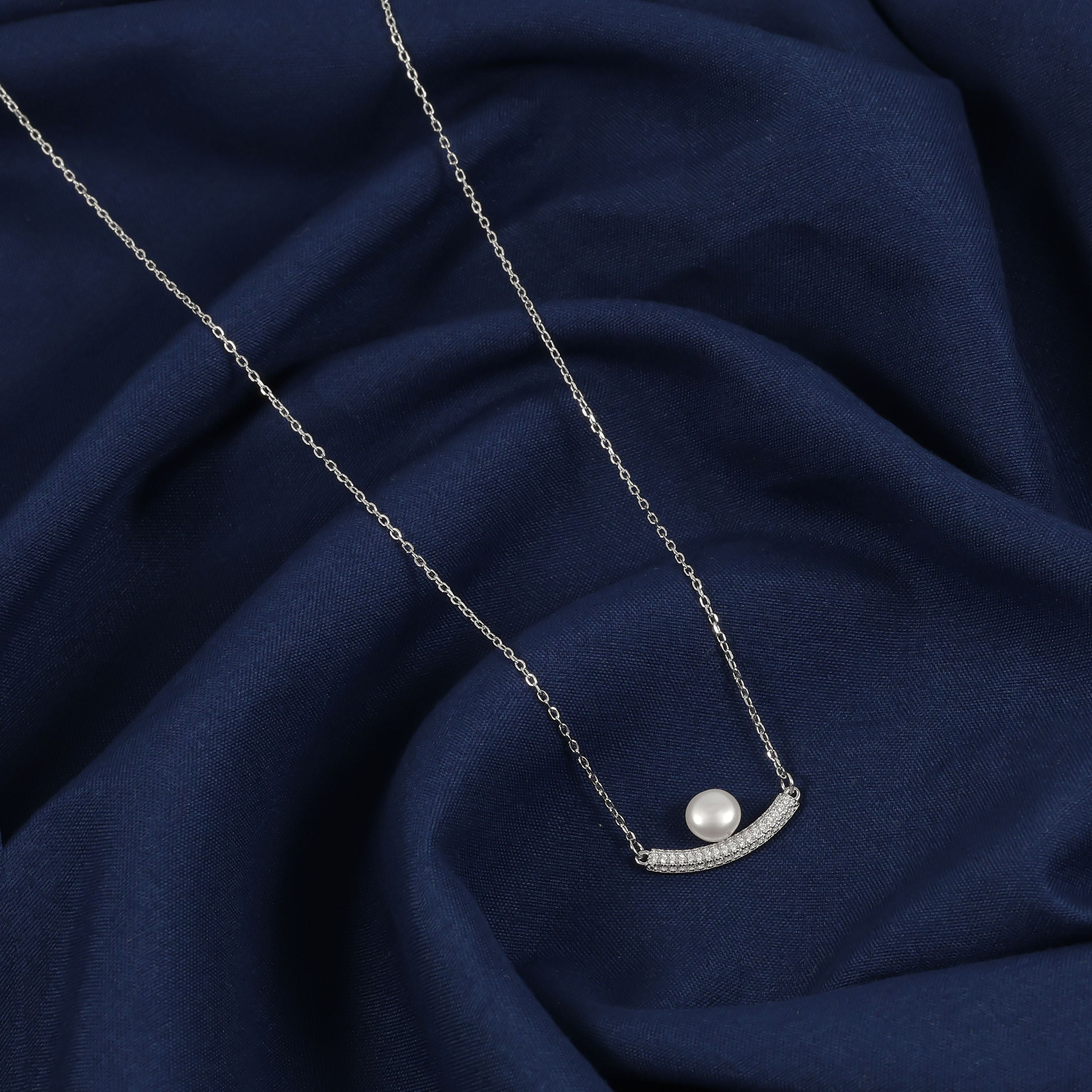 Silver Crystal Bow NecklaceSilver Pearl Curve Necklace