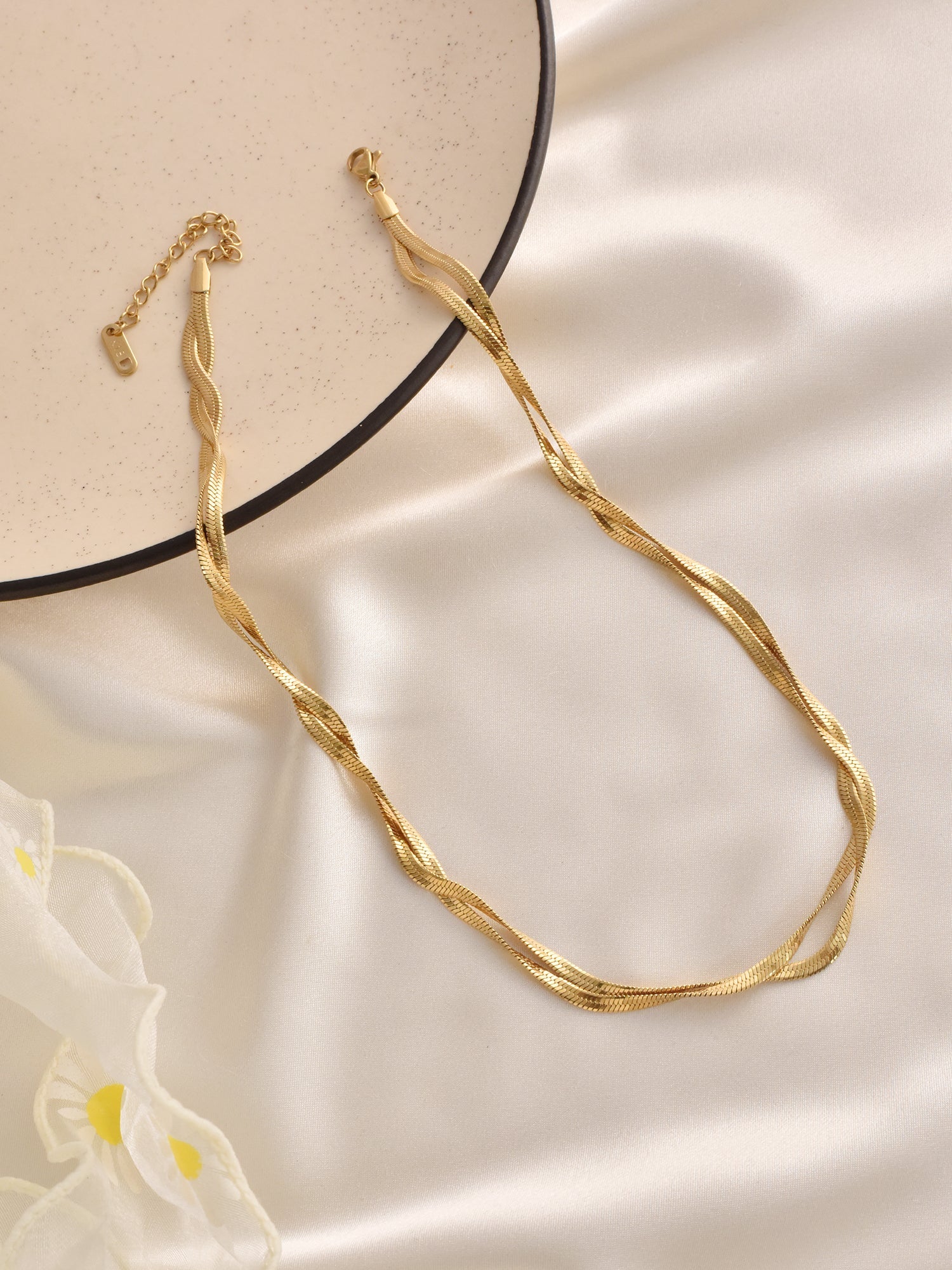 Twist Hoop Earrings -GoldDouble Herringbone Snake Chain