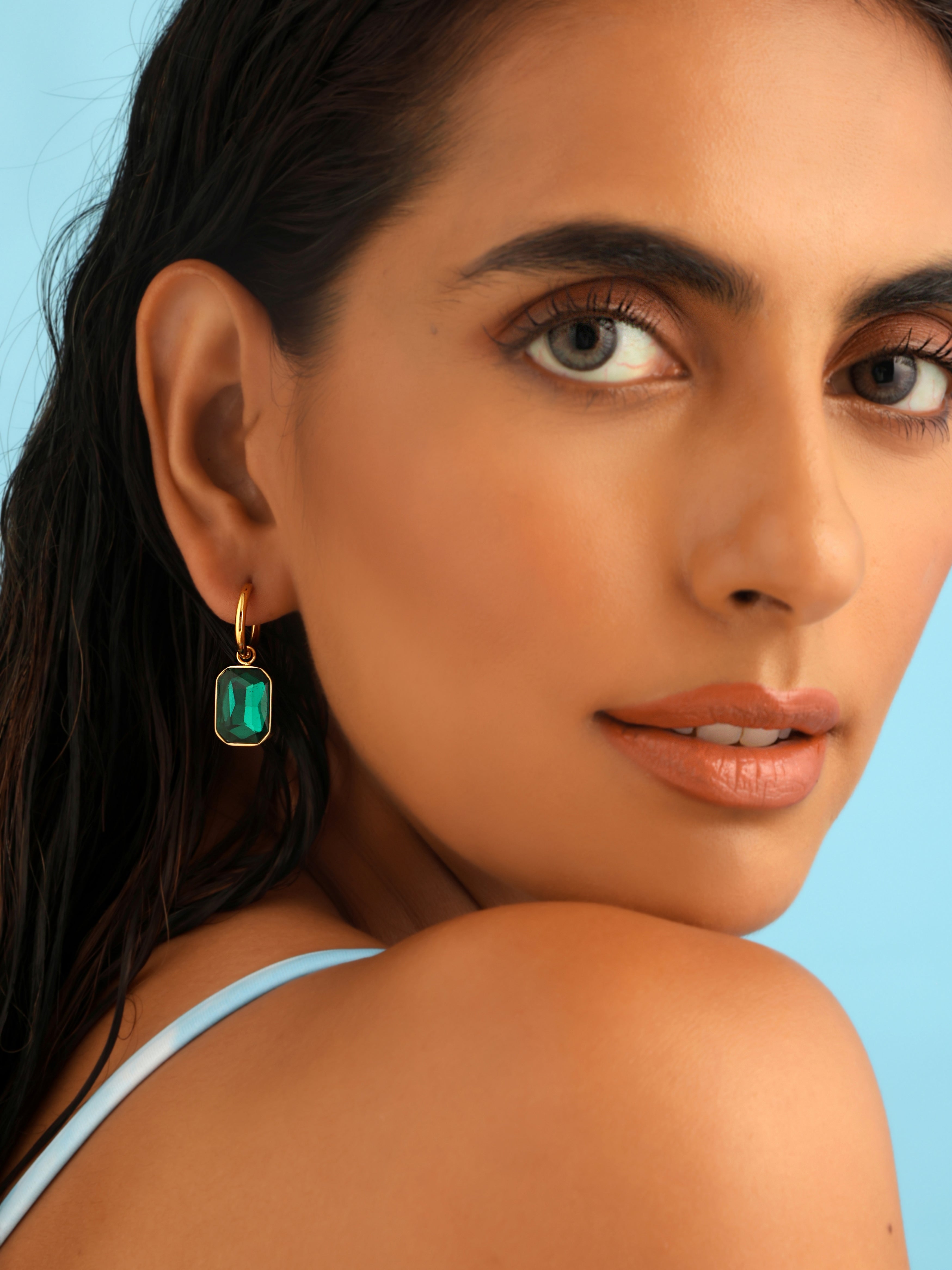 Large Emerald Waterproof Earrings