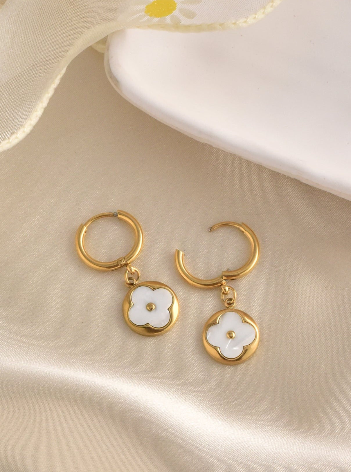 MOP Clover Drop Earrings