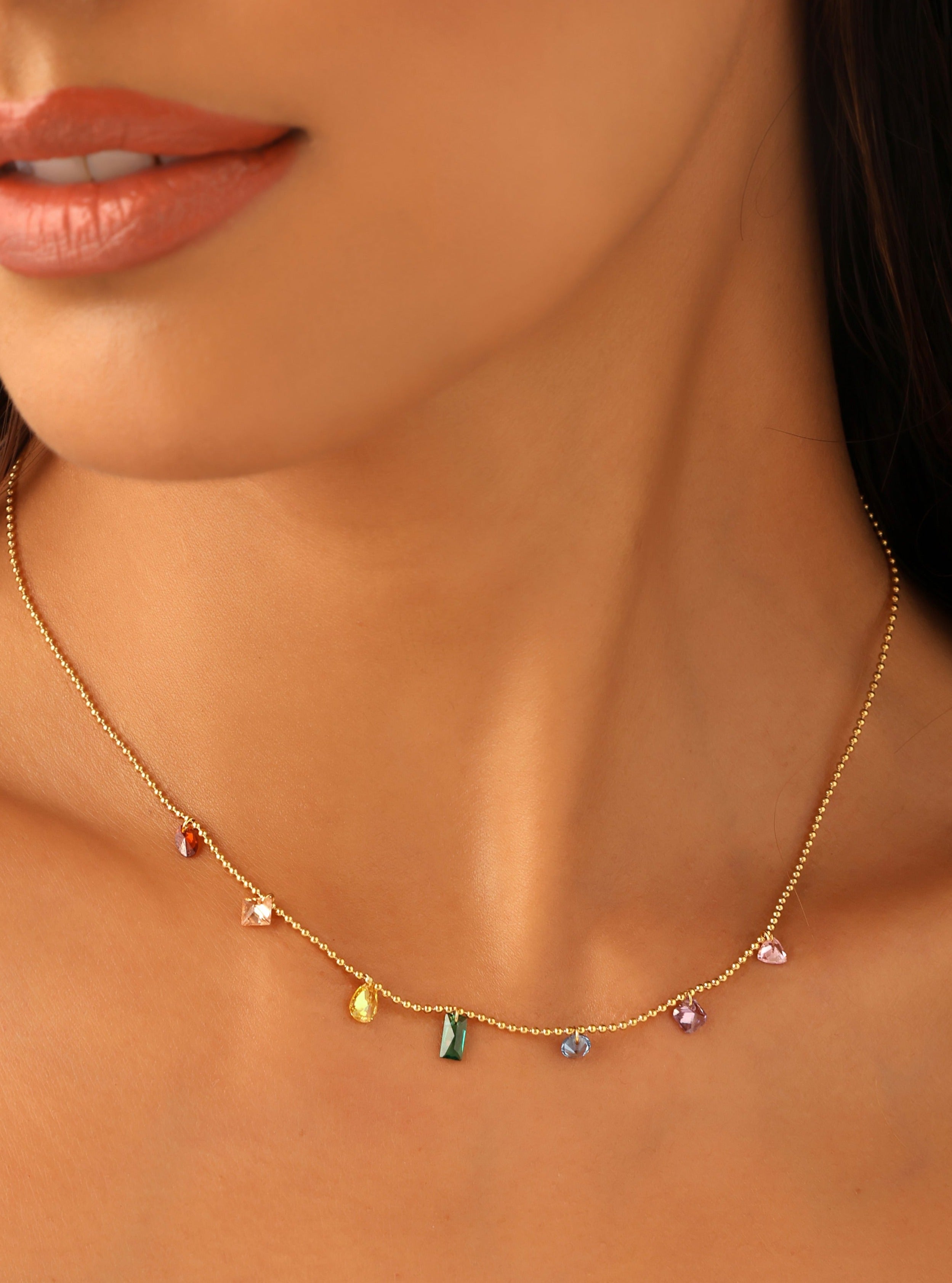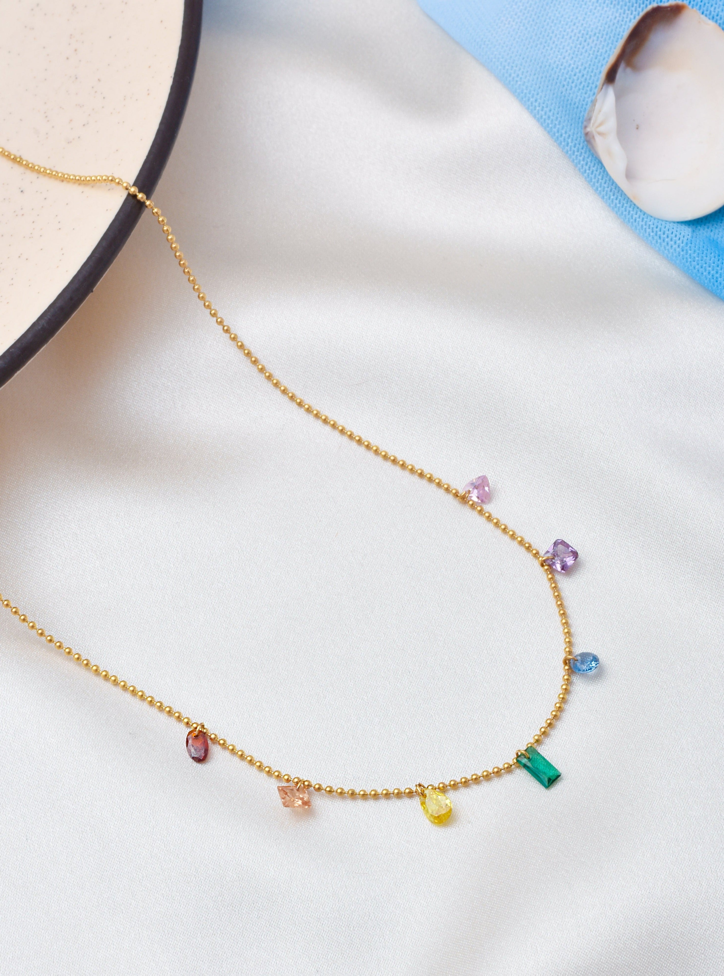 This gorgeousRainbow Dainty Necklaceadds elegance and sophistication to any look. Crafted from waterproof materials, it will retain its eye-catching beauty even in wet conditions. A perfect choice for a truly special occasion.