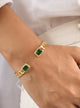 Offering timeless elegance, theZaar Cubic Zirconia Cuff Banglebrings luxury to any look. Crafted with shimmering cubic zirconia stones and plated in rich gold, it lends sophistication and glamour to your ensemble. Perfect for accessorizing special occasions or everyday style.