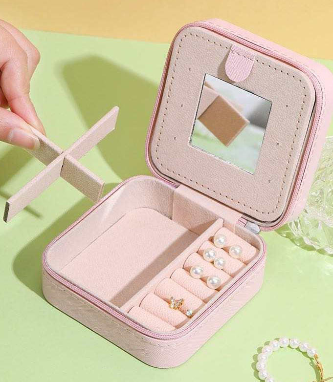 Keep your accessories safe while you plan your next getaway with this faux leather square jewellery box. Light and handy yet very spacious, it comes with a zip to keep your baubles neatly packed.