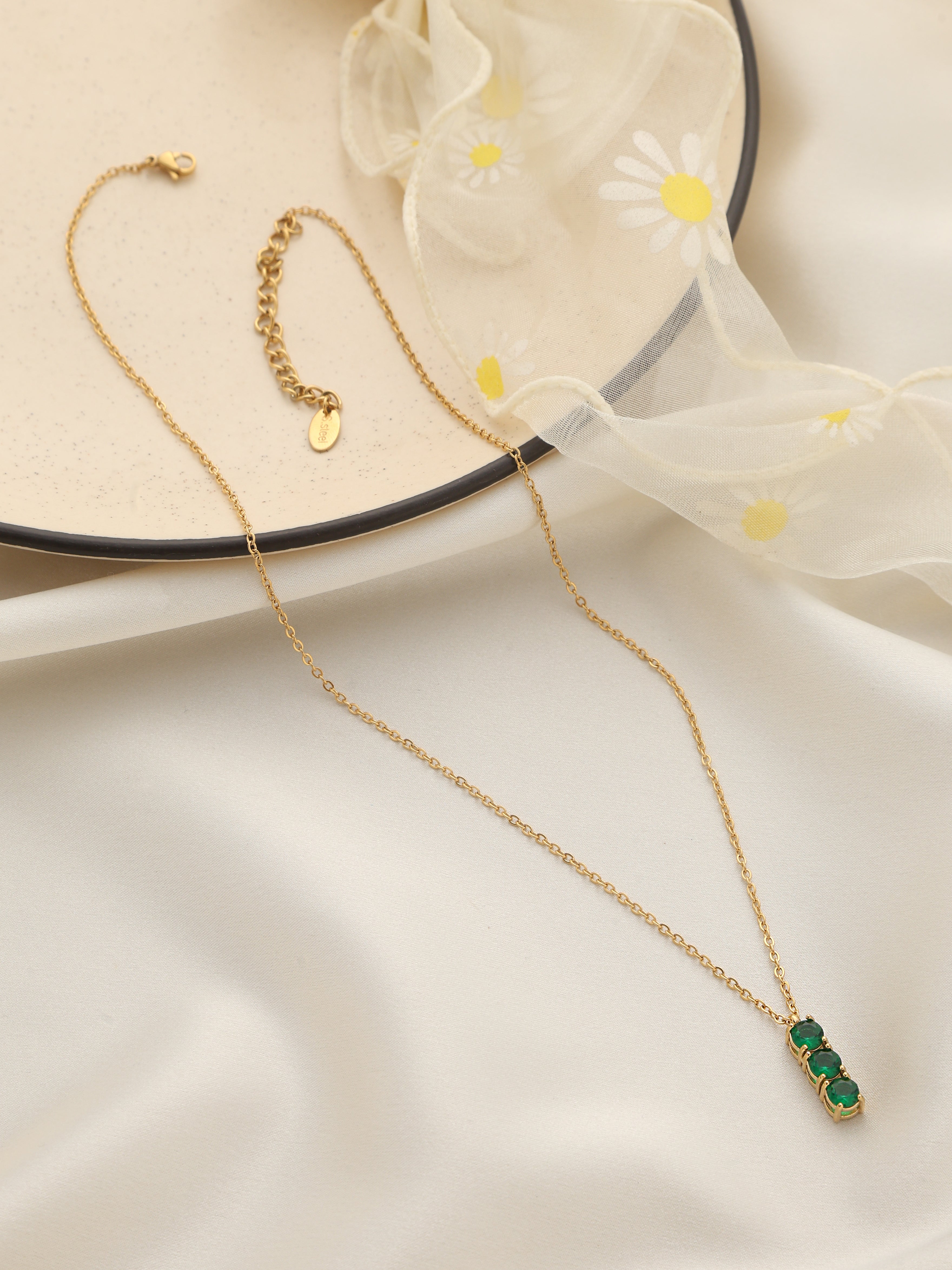 Amaya Fresh Water Pearl Bra...Minimalist Emerald Necklace