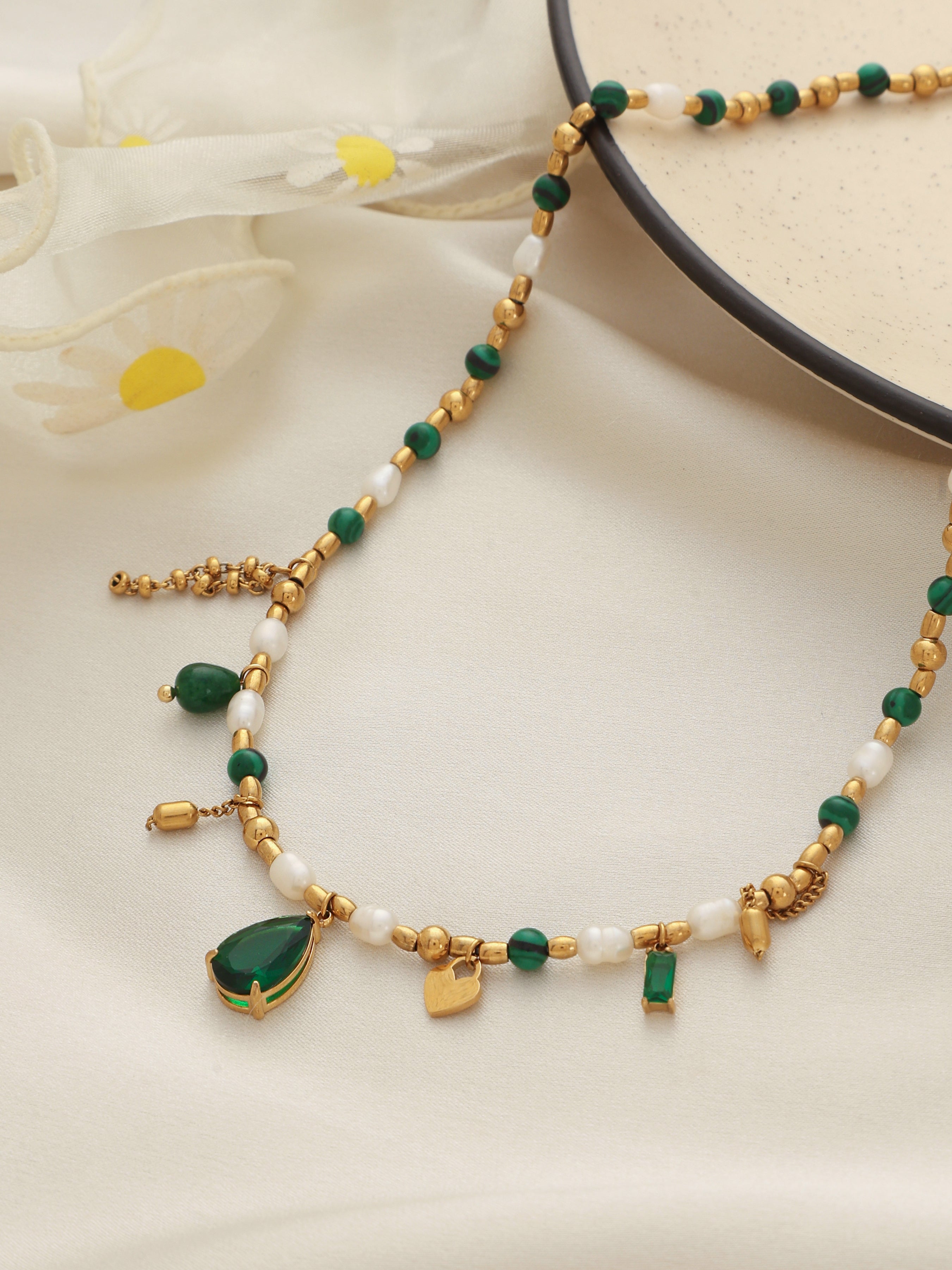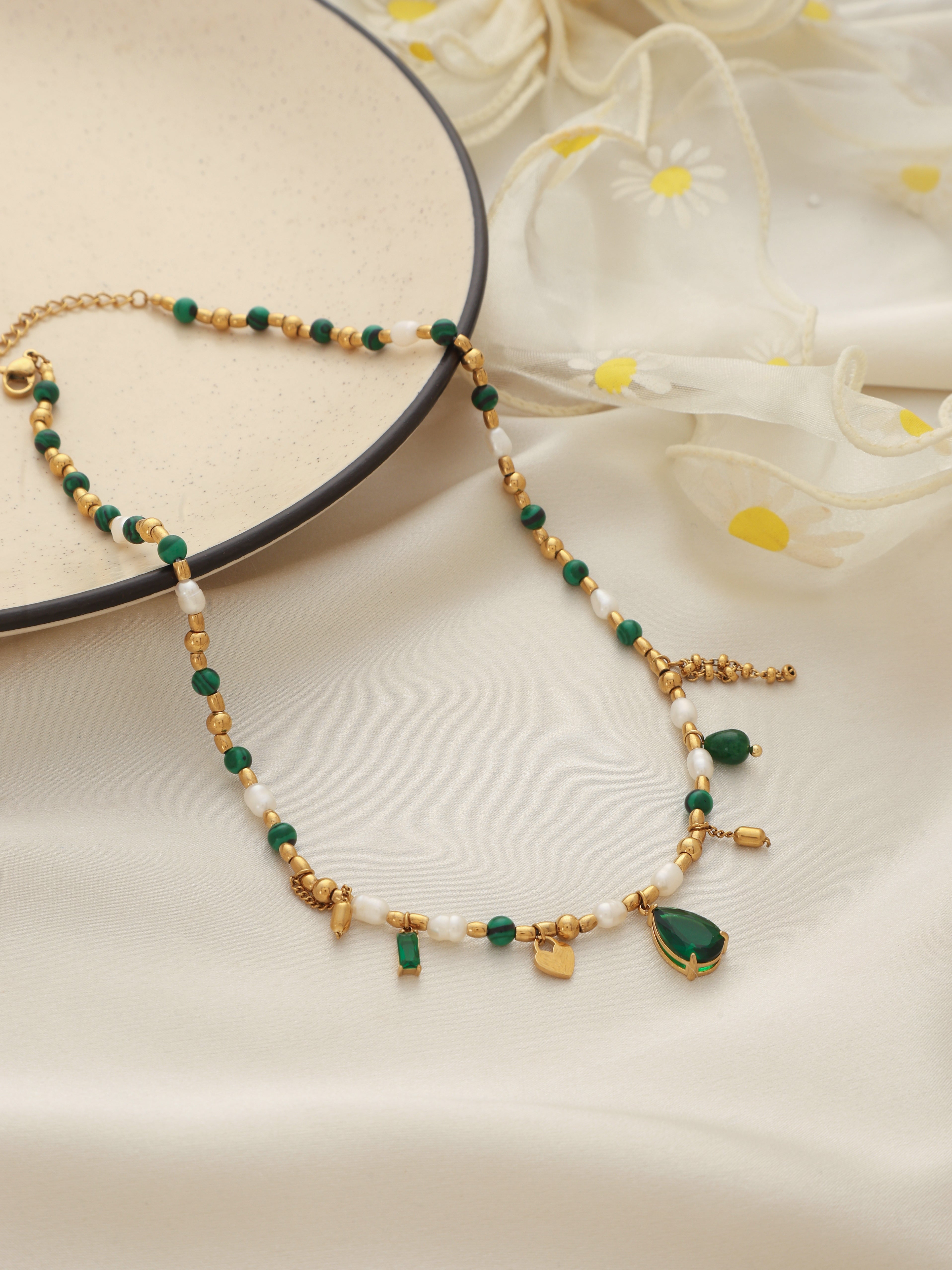 To maintain your jewellery’s beauty, avoid contact with perfumes, water, or harsh chemicals. Store pieces in a dry pouch after use and gently wipe them with a soft cloth to keep them shining and durable.