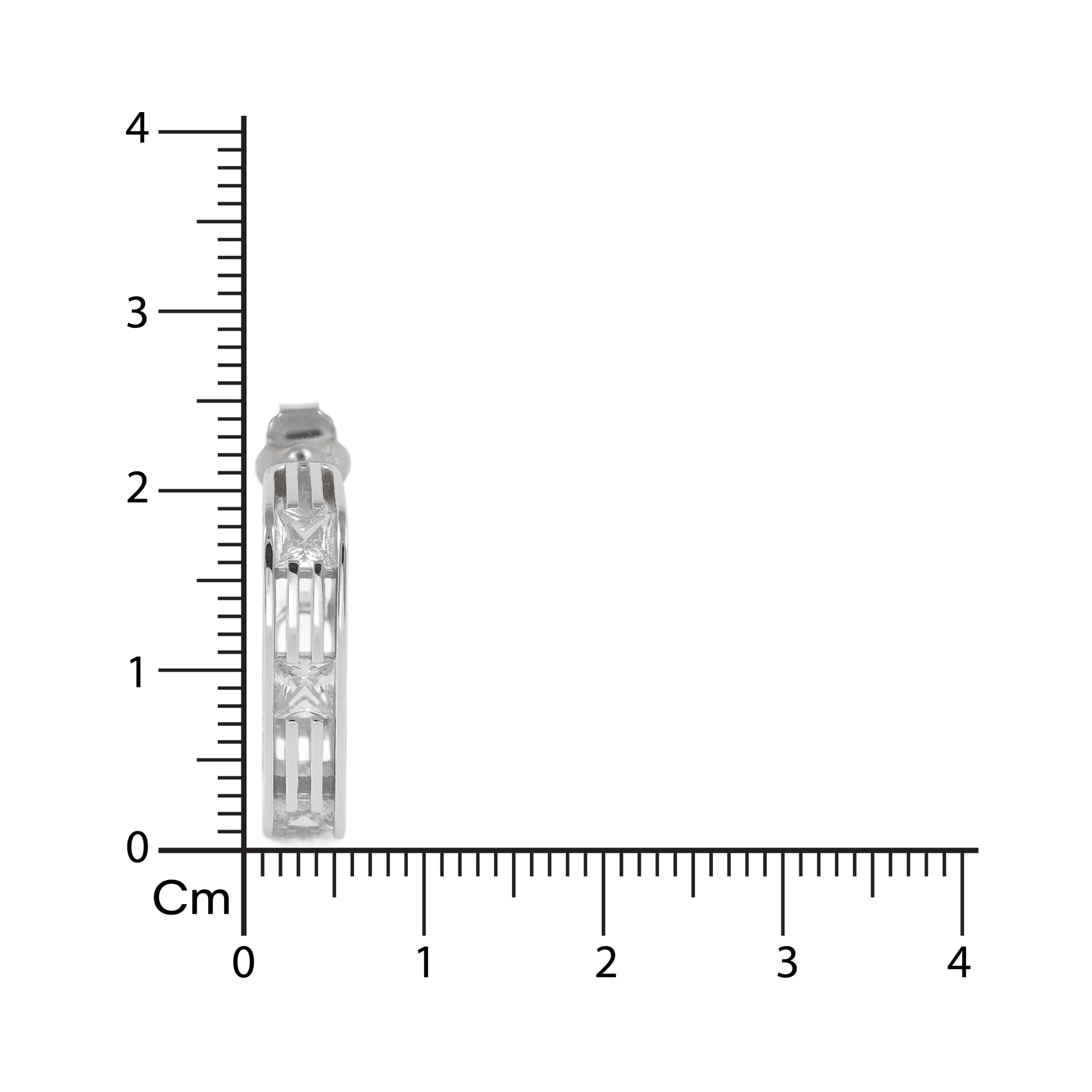 A modern, rectangular mini-hoop or huggie style, featuring a strong, architectural silhouette. Showcases a sophisticated pattern of parallel polished metal lines interspersed with channel-set clear, brilliant stones.