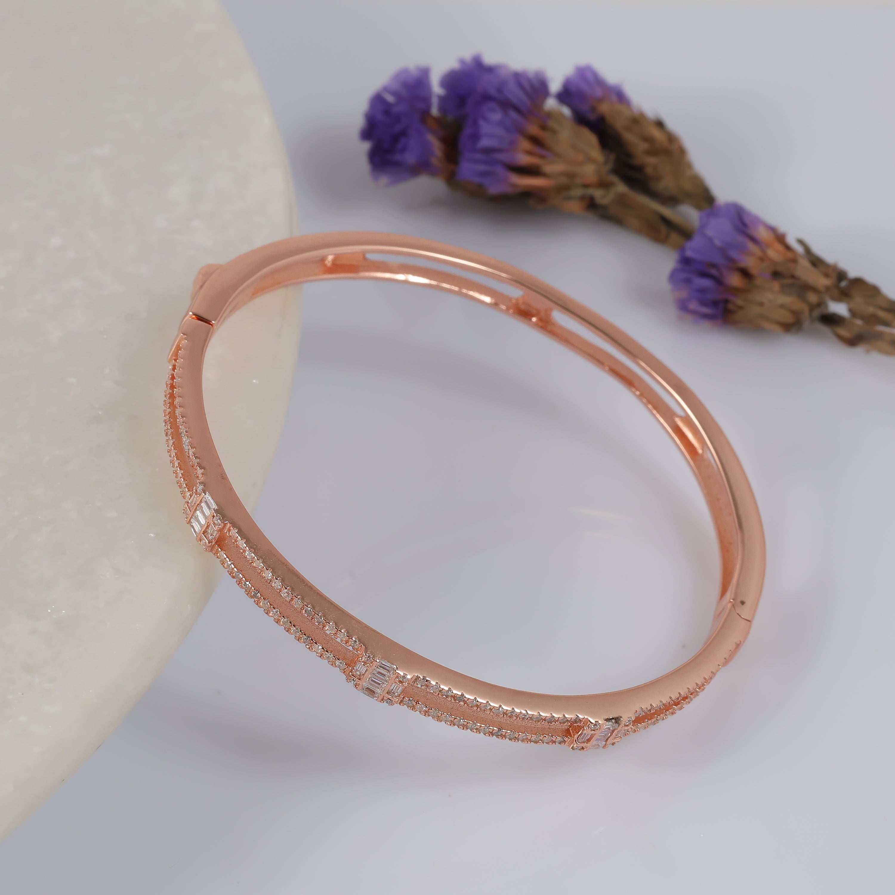 The structured parallel lines of diamonds, interspersed with the sleek brilliance of baguettes, create a captivating rhythm of light.