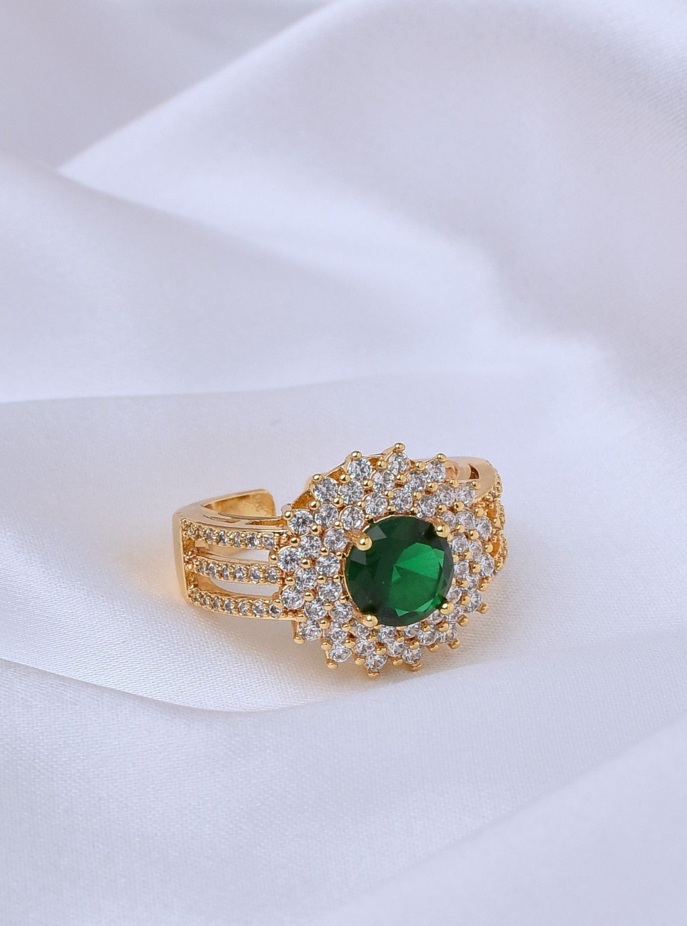 Elevate your look with theAthena Ring, featuring a striking green emerald and coated with...