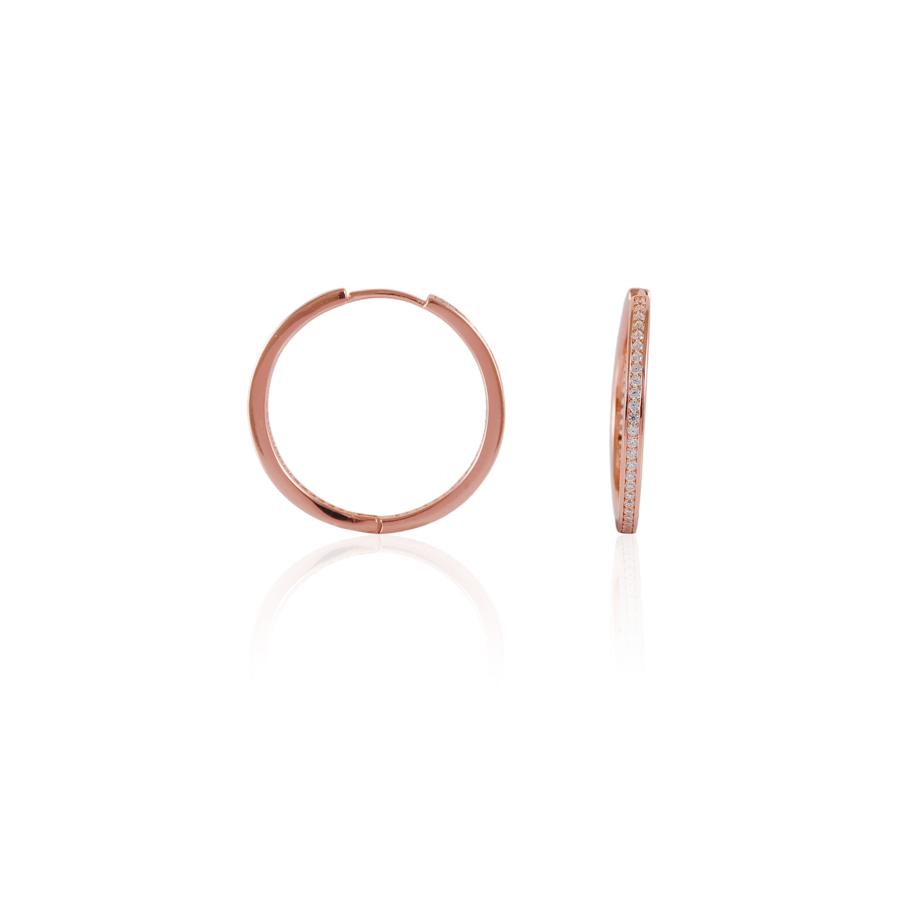 Gracefully crafted for timeless elegance, the Rosé Eternity Diamond Hoops feature a slender rose gold silhouette adorned with a seamless row of shimmering diamonds. Their refined profile delivers just the right balance of subtle sparkle and modern sophistication.
