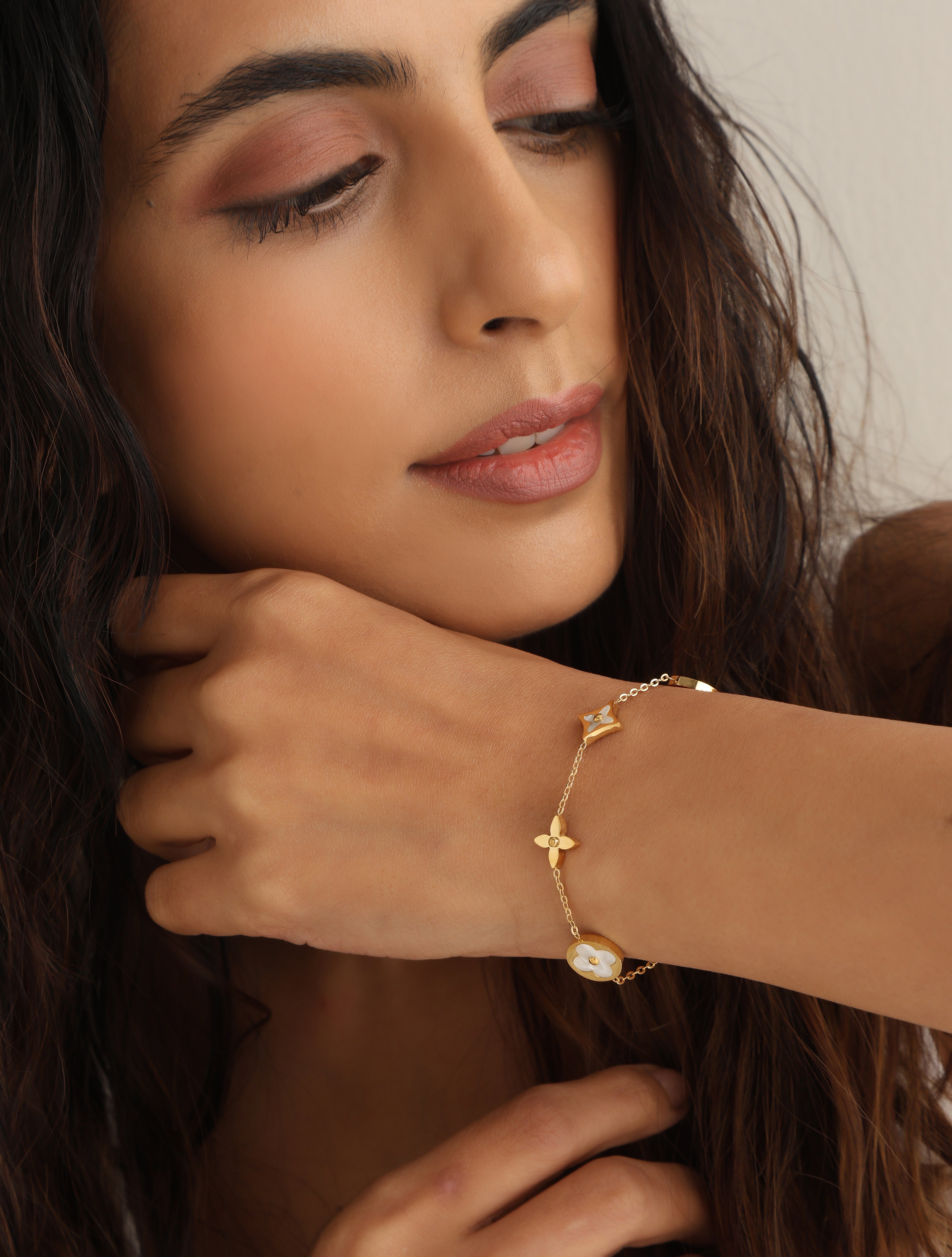 To maintain your jewellery’s beauty, avoid contact with perfumes, water, or harsh chemicals. Store pieces in a dry pouch after use and gently wipe them with a soft cloth to keep them shining and durable.